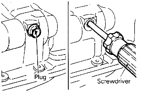 (1) Remove the plug on the side of the cylinder block.