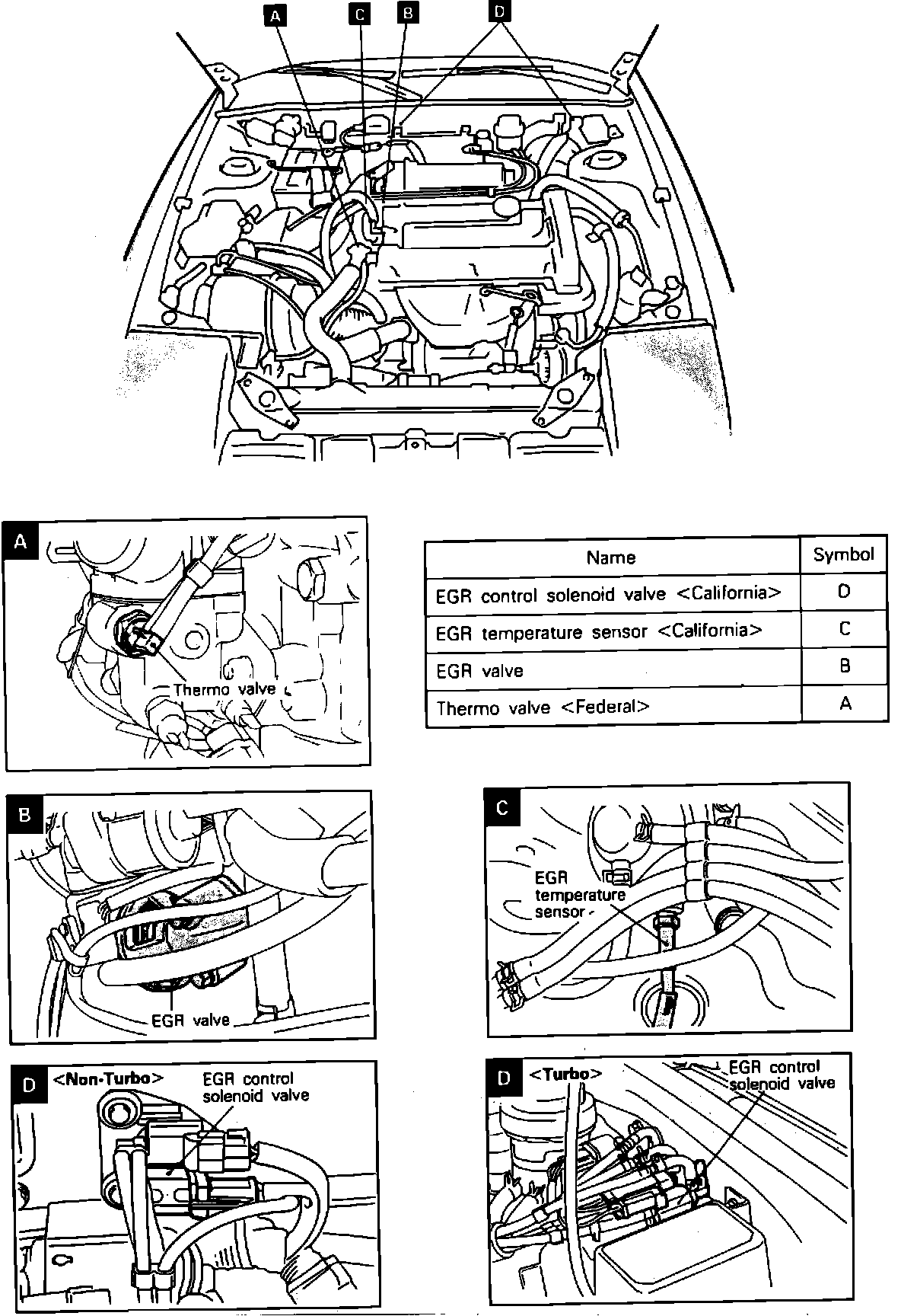 EGR Control Solenoid Valve (Ca.): On the firewall.