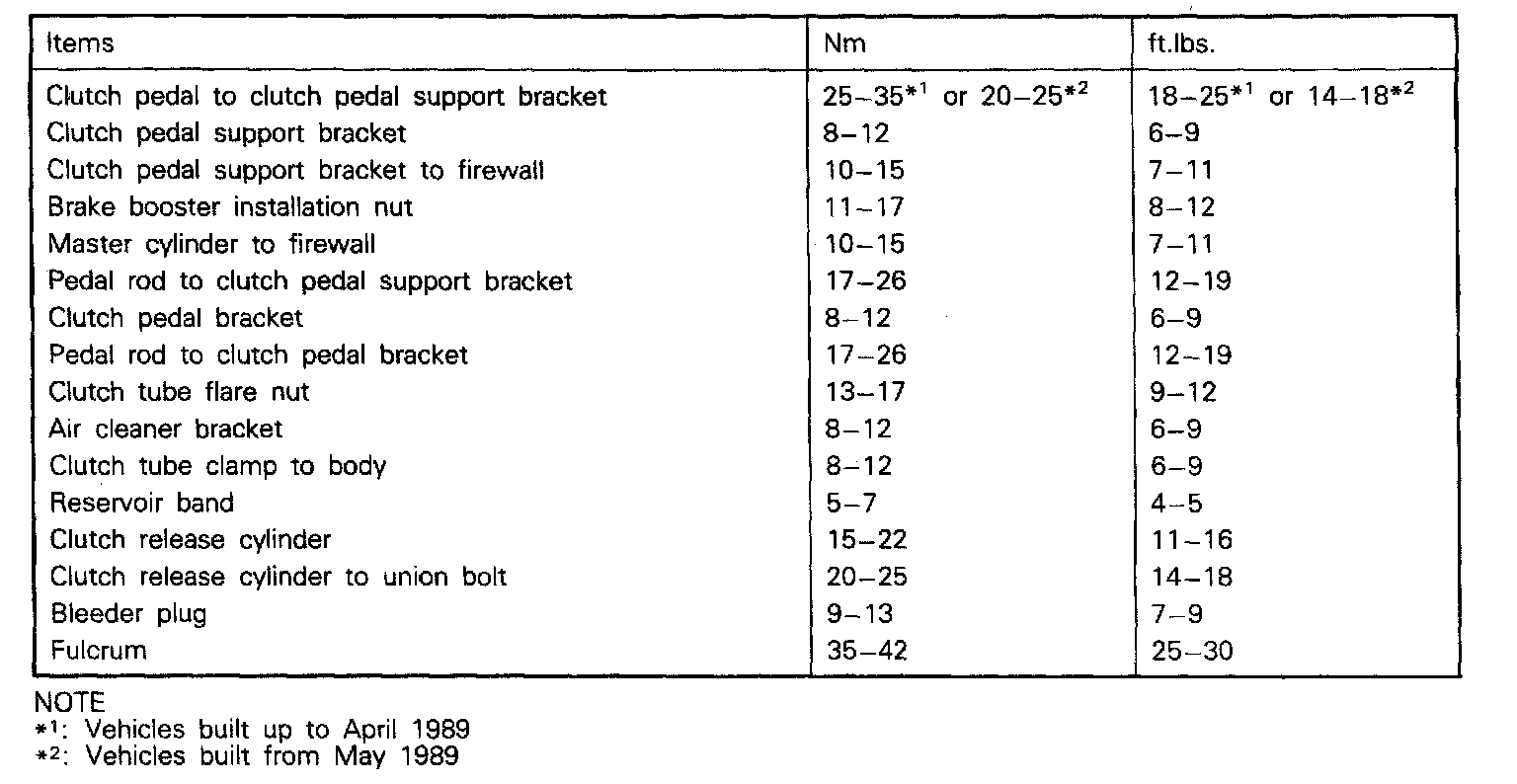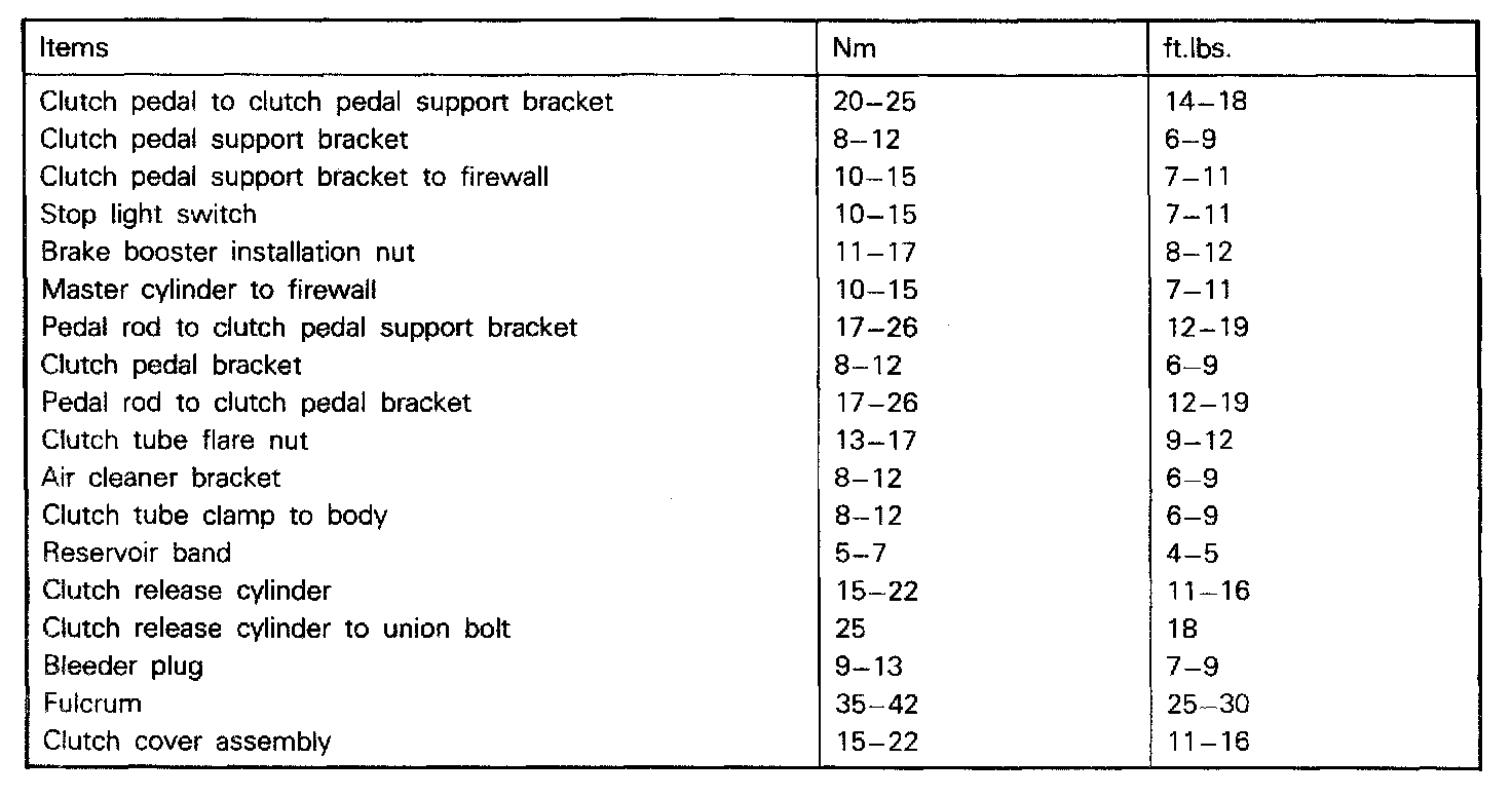 F5M22/F5M33 M/T, Clutch Torque ('92-'94):