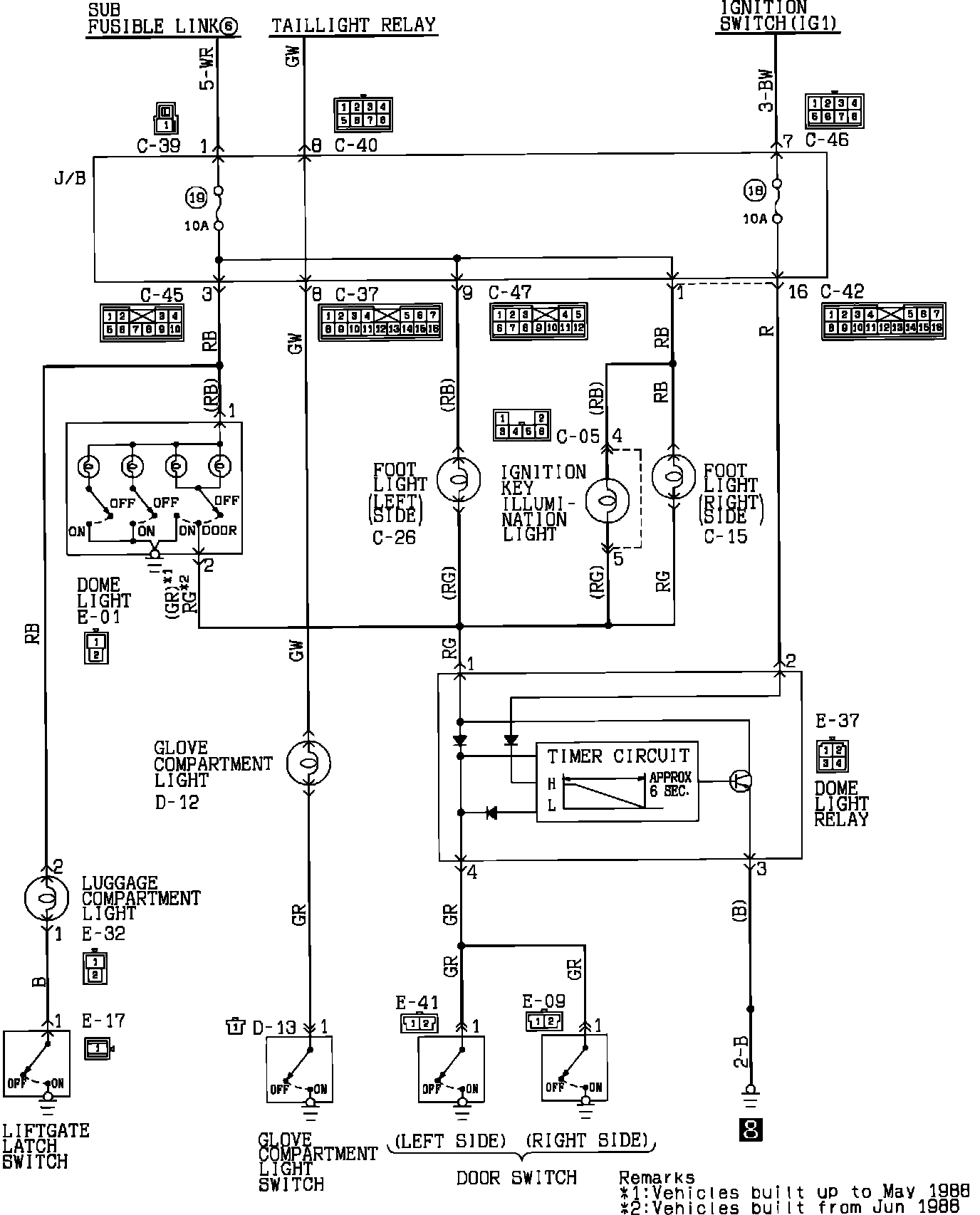Dome, Foot, Glove Compartment, Ignition Key Illumination & Luggage Compartment Lamps: