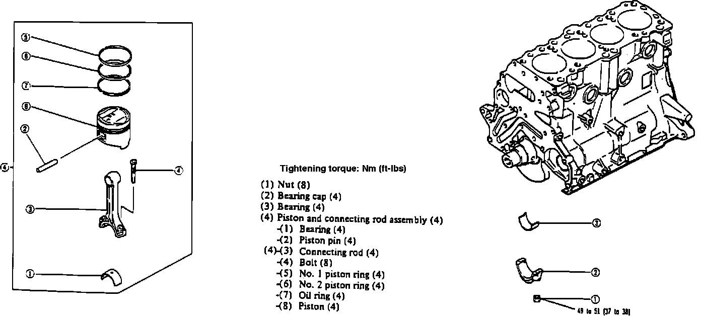 3. Ensure connecting rod caps and bearings are placed on proper connecting rods, then tighten bolts to specification.