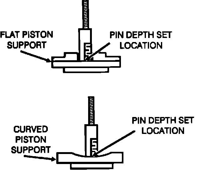 NOTE: The piston pin depth set location is measured on the piston support as shown in Figure 6. If a curved support is being used, measure to the bottom center of the curve. For a flat support, measure to the lowest point of the flat surface.