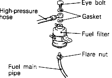2. Remove the eye bolts while holding the fuel filter nuts securely.