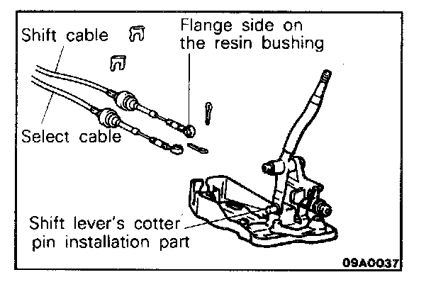 4. The flange side of the resin bushing at the shift cable end should be at the split pin side.