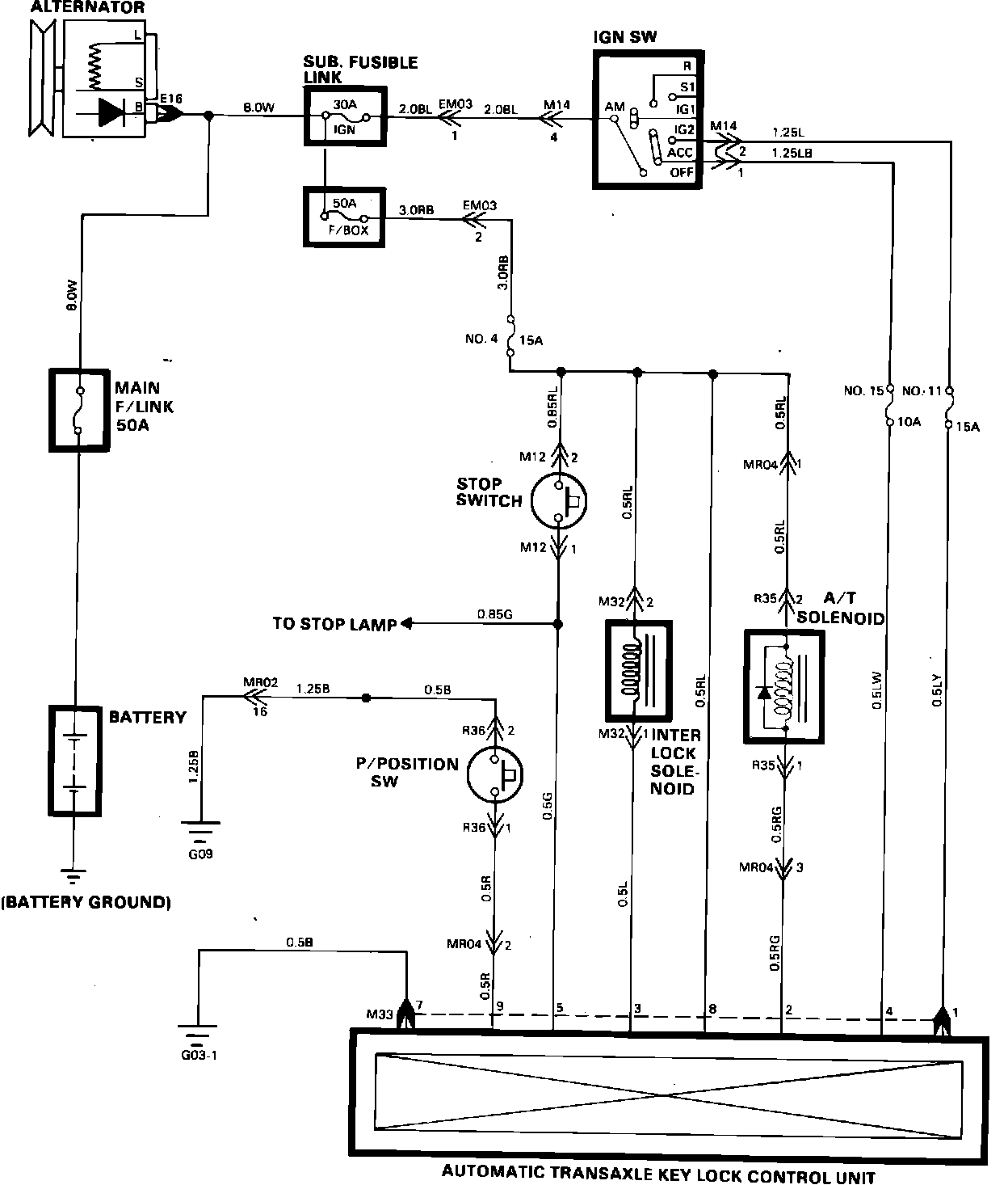 Automatic Transaxle Key Lock Control: