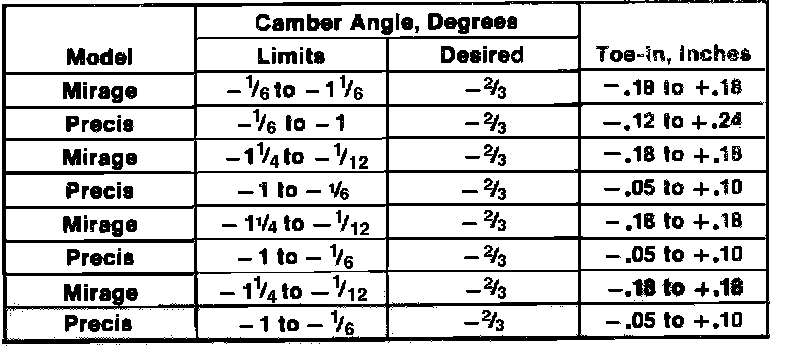 Rear Wheel Alignment Specifications: