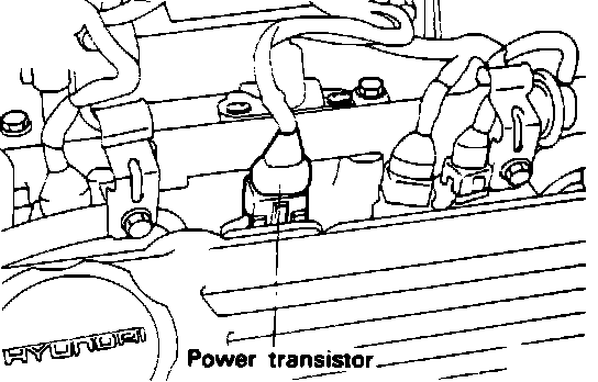 The power transistor (located on the intake manifold) functions to control the ignition timing by interrupting the ignition coil primary current ground causing secondary circuit discharge.