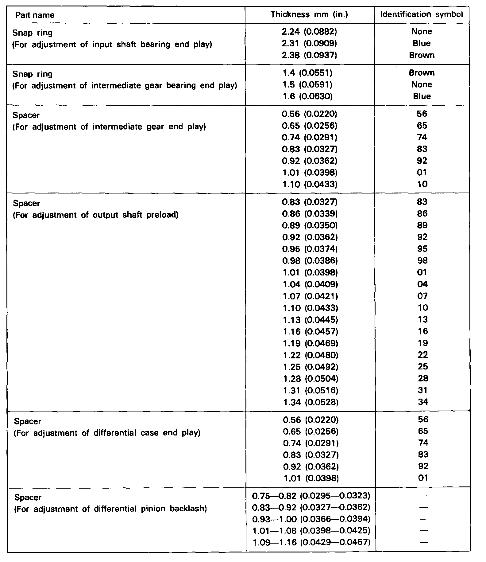 Manual Transmission/Transaxle: Application and ID