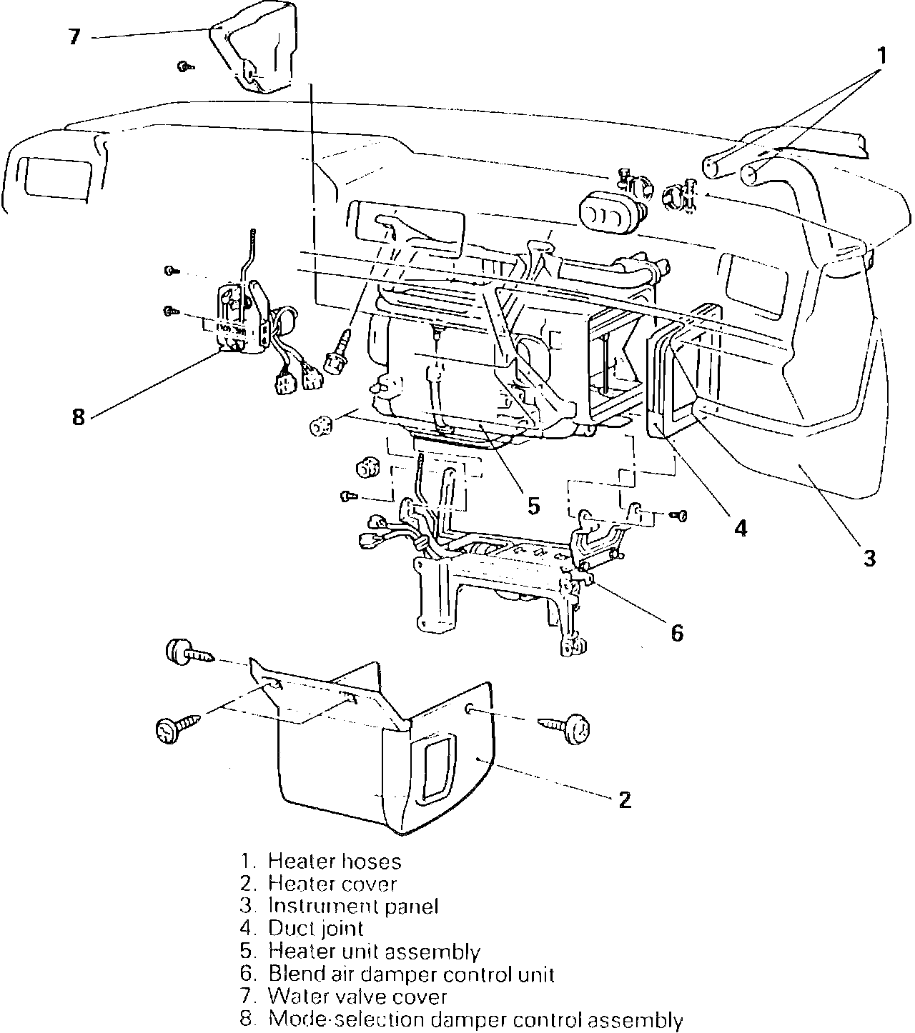 8. Remove heater core from heater unit as follows: