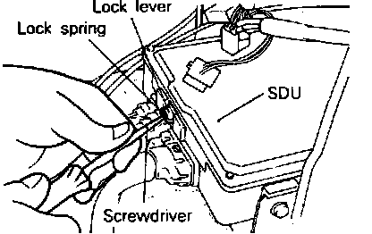 a. Using a screwdriver, push in SDU lock spring to release lock lever, Fig. 18.