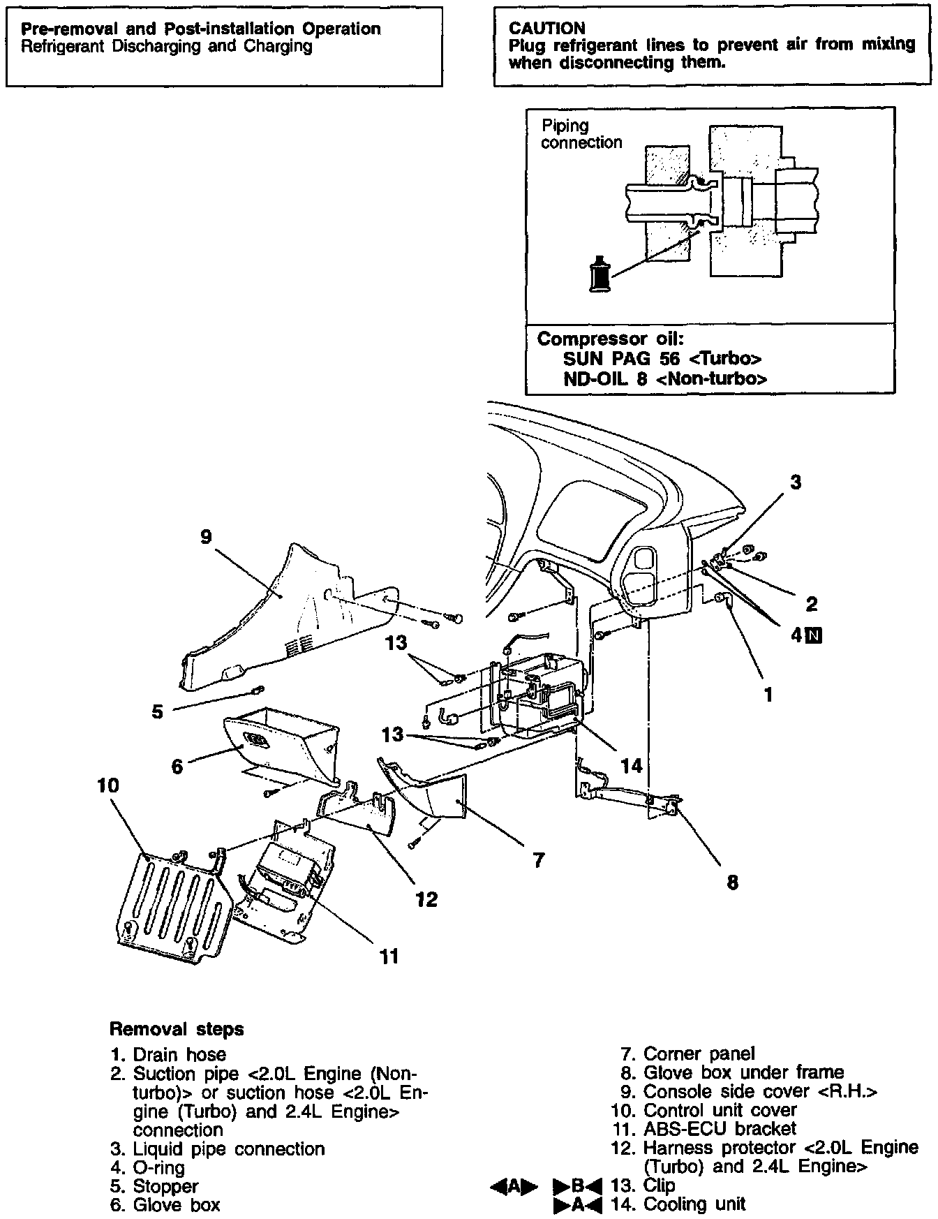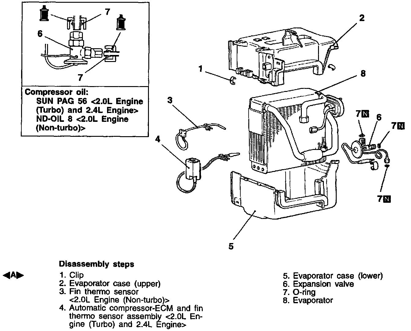When replacing the cooling unit with new one, refill the evaporator with a specified amount of compressor oil.