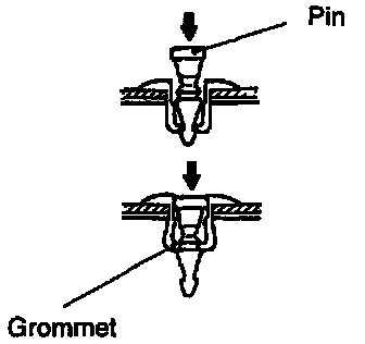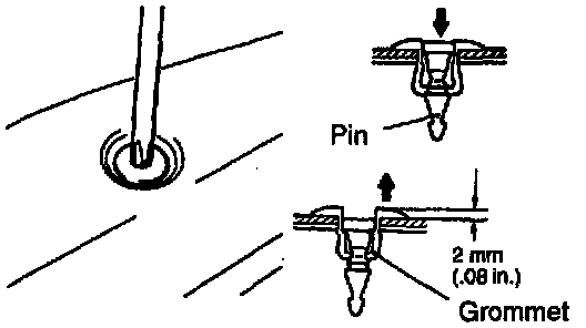 CAUTION: Do not push the pin inward more than necessary be- cause it may damage the grommet or the pin may fall in, if pushed too far.