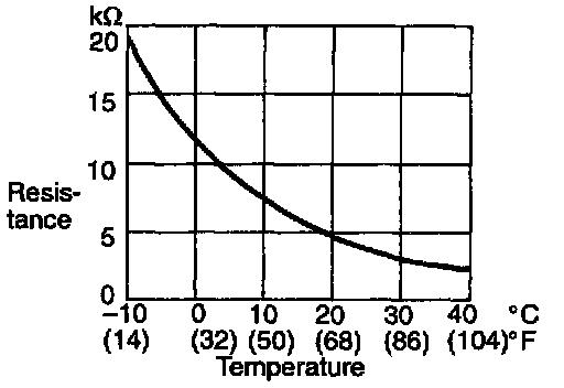 When the resistance value between the sensor terminals is measured under two or more temperature conditions, the resistance value should be close to the values shown in the graph.