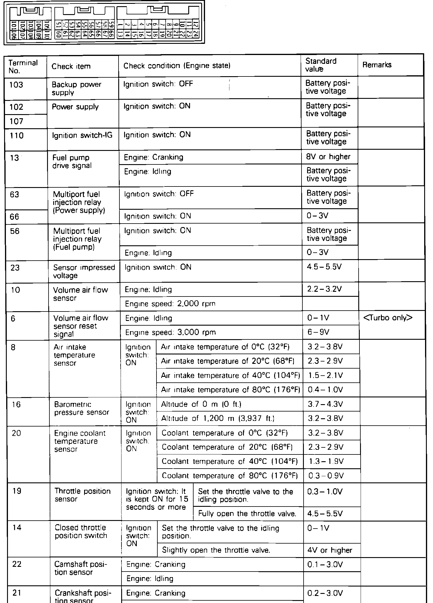 �Y����ECU Terminal Voltage Chart: