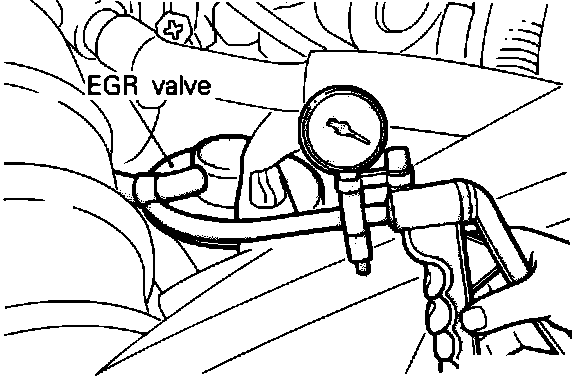 6. Using the vacuum pump apply 8.5 in. Hg (215 mm Hg) of vacuum while the engine is at idle and verify that idle becomes unstable. If the engine does not respond, the EGR valve may be defective or the passage may be restricted.
