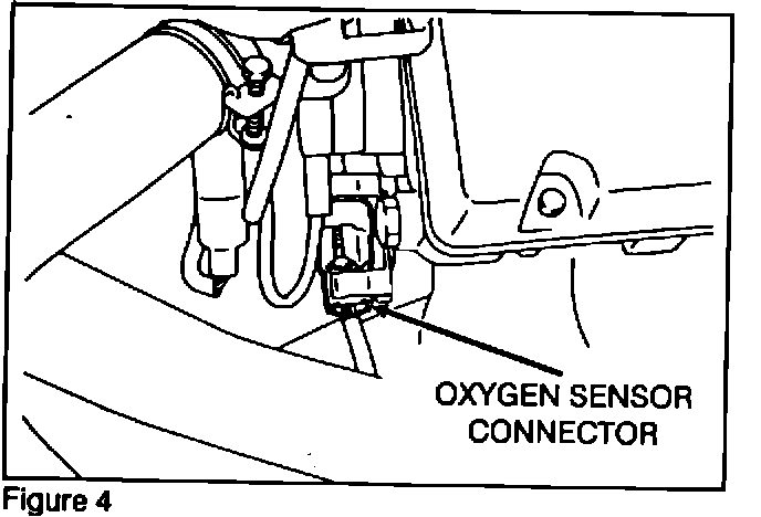 3. Disconnect the oxygen sensor connector (Figure 4) and remove the oxygen sensor wire from the wire supports/retainers.