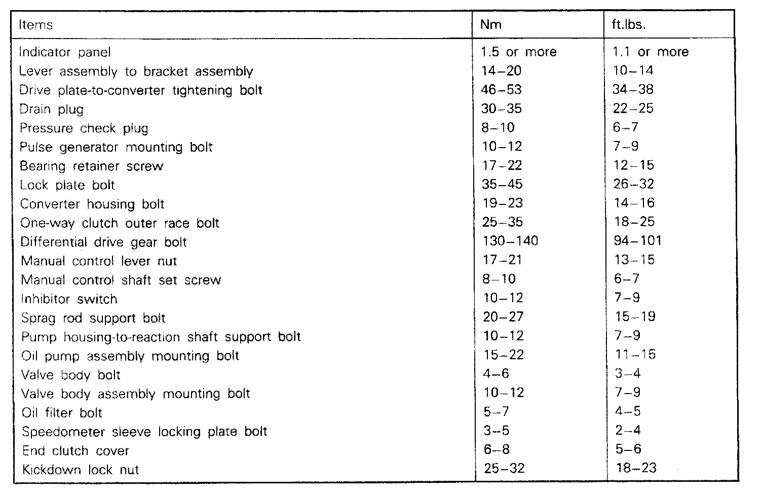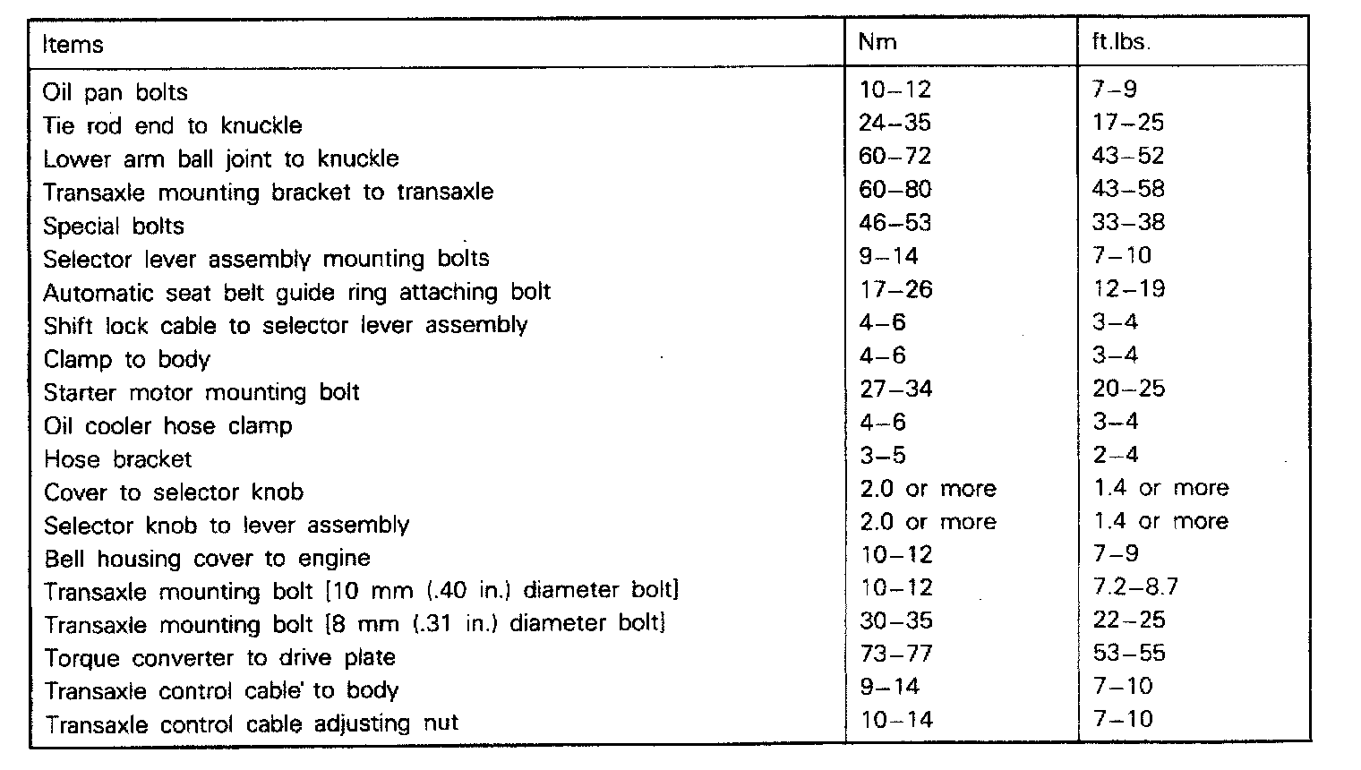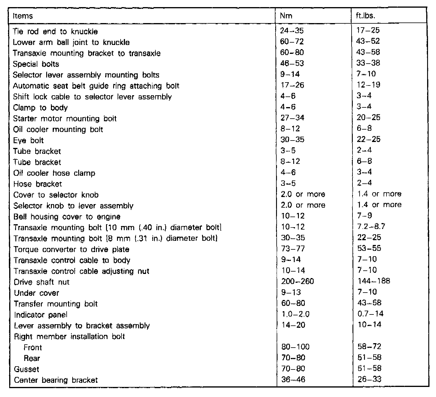 F4A22/F4A33 4-spd A/T, Transaxle Torque: