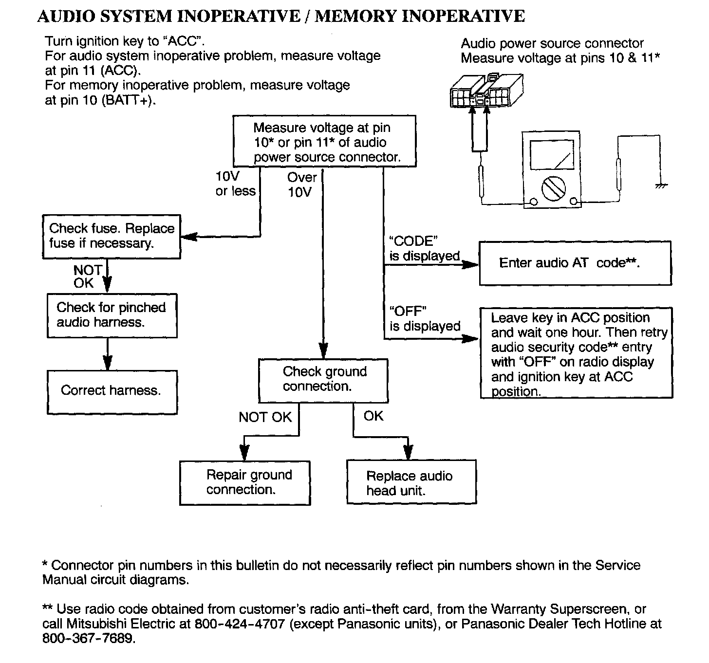 AUDIO SYSTEM INOPERATIVE / MEMORY INOPERATIVE