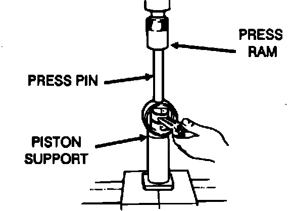 NOTE: Make certain that the piston support seats squarely against the piston and that the piston pin will slide through the hole in the piston support.
