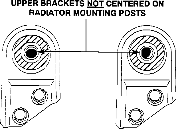 1. Examine the upper radiator mounting brackets. If the brackets are centered on the radiator mounting posts and the radiator moves freely within the brackets, the radiator is mounted correctly and no action is required. If the brackets are not centered, go to Step 2.