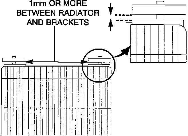 4. Measure the clearance between both upper mounting brackets and top of the radiator. The clearance should be 1 mm or more.