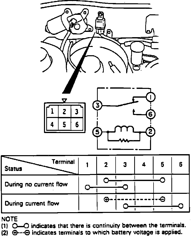 Fig. 43 Wiper Relay Continuity Chart: