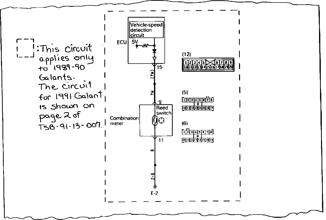 This Technical Service Bulletin modifies the vehicle speed sensor circuit to include checking procedures for the 1991 Galant. As a reference to this TSB, write the revision number in the TSB Revision box located at the bottom of the affected Service Manual page.