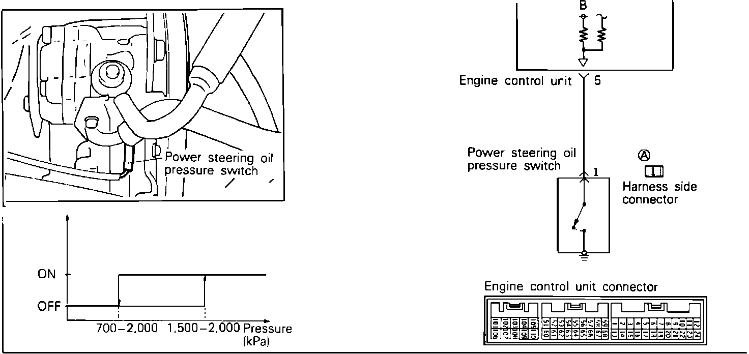 1. Disconnect the power steering pressure sensor connector and turn the key to the ON position.