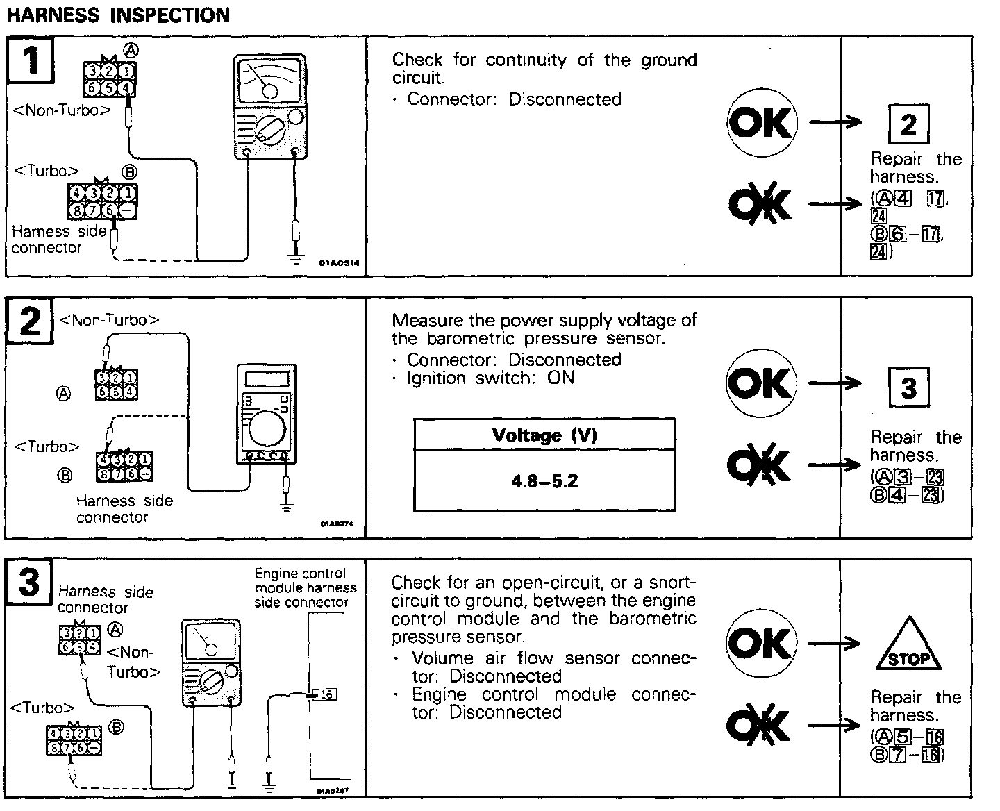 Hint 2: If, during high-speed driving, there is a noticeable sharp drop of the displayed pressure of the barometric-pressure sensor, check for clogging of the air cleaner.