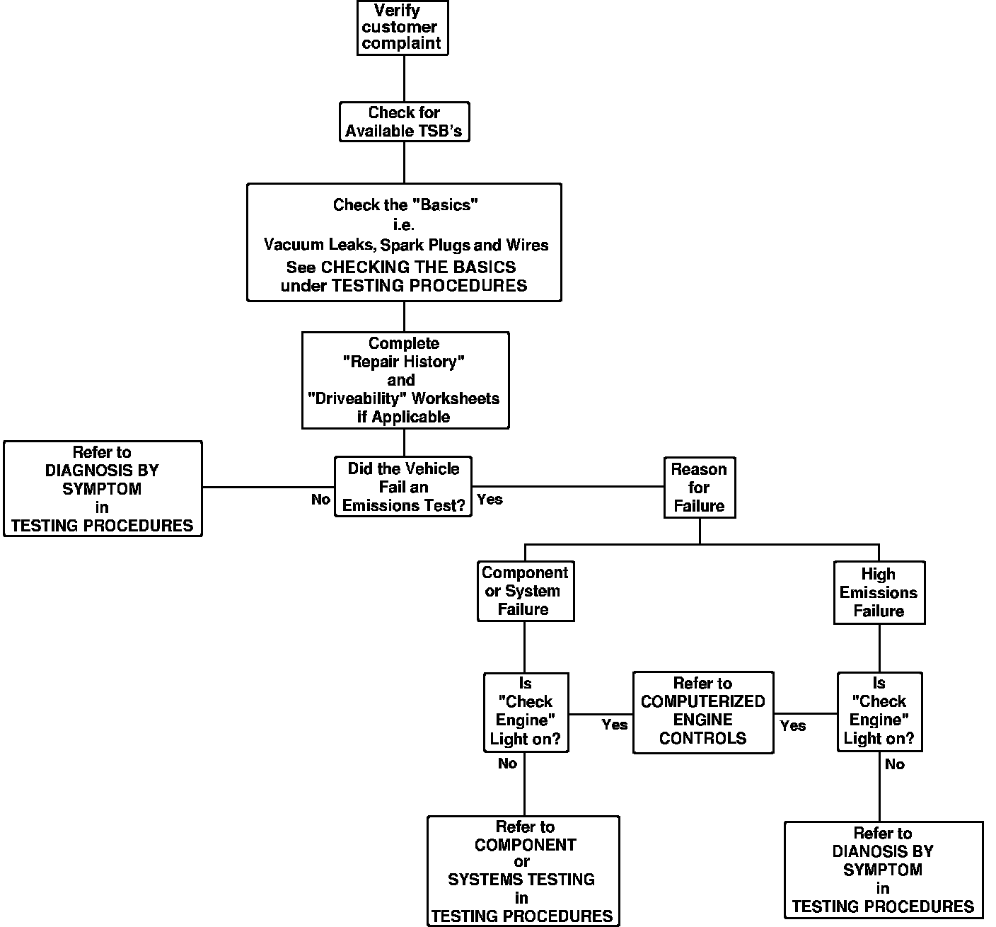 5. This list of symptoms and their possible causes is used to aid in diagnosing intermittent problems or failures which do not store trouble codes in the computer memory. DIAGNOSIS BY SYMPTOM is located under TESTING PROCEDURES.