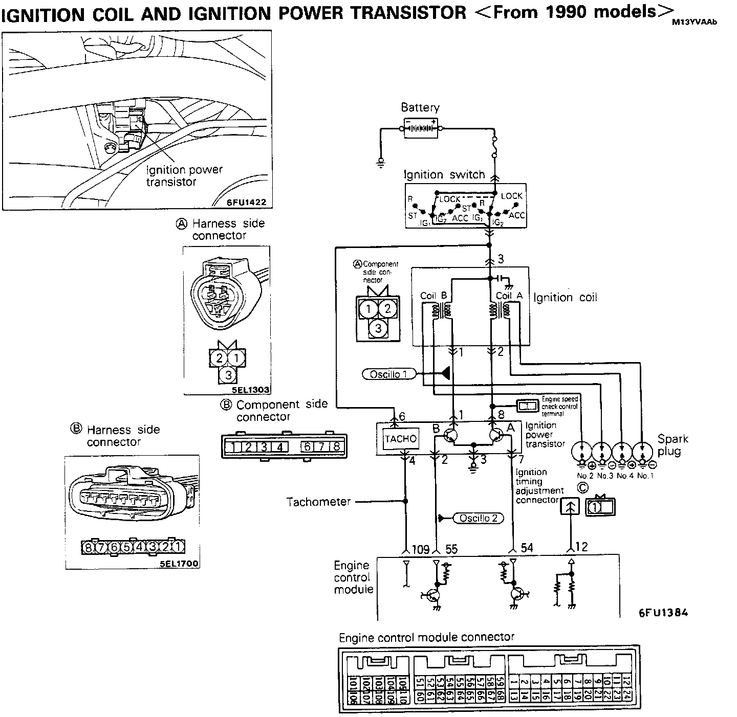 When the engine control module switches OFF the power transistor inside the unit, battery Voltage is applied to the ignition power transistor unit, and the ignition power transistor unit is switched ON.