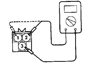 (1) Connect the negative (-) terminal of the 1.5V power supply to terminal 3 of the ignition power transistor; then check whether there is continuity between terminal 1 and terminal 3 when terminal 2 and the positive (+) terminal are connected and disconnected.