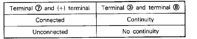 (1) Connect the negative (-) terminal of the 1.5V power supply to terminal 3 of the ignition power transistor; then check whether there is continuity between terminal 3 and terminal 8 when terminal 7 and the positive (+) terminal are connected and disconnected.