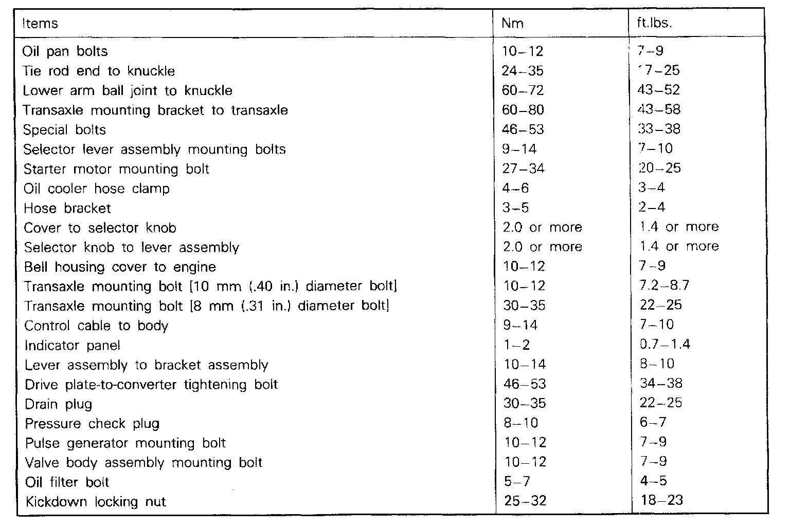 F4A22/W4A33 A/T, Transaxle Torque: