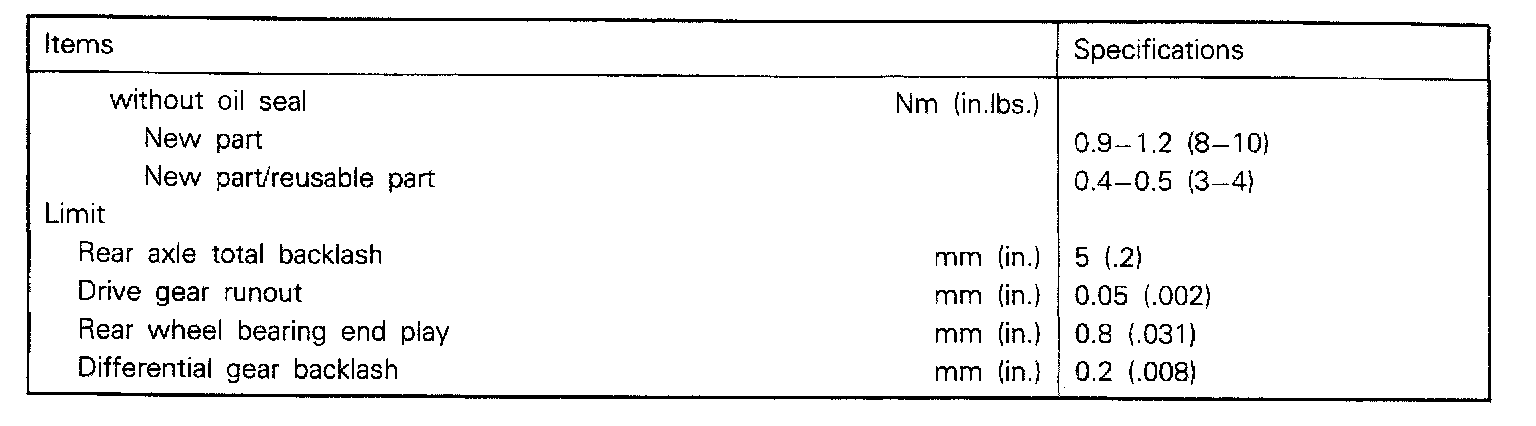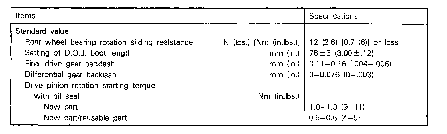 Rear Axle (AWD) Up To 92, Differential Standard Values (1of 2):
