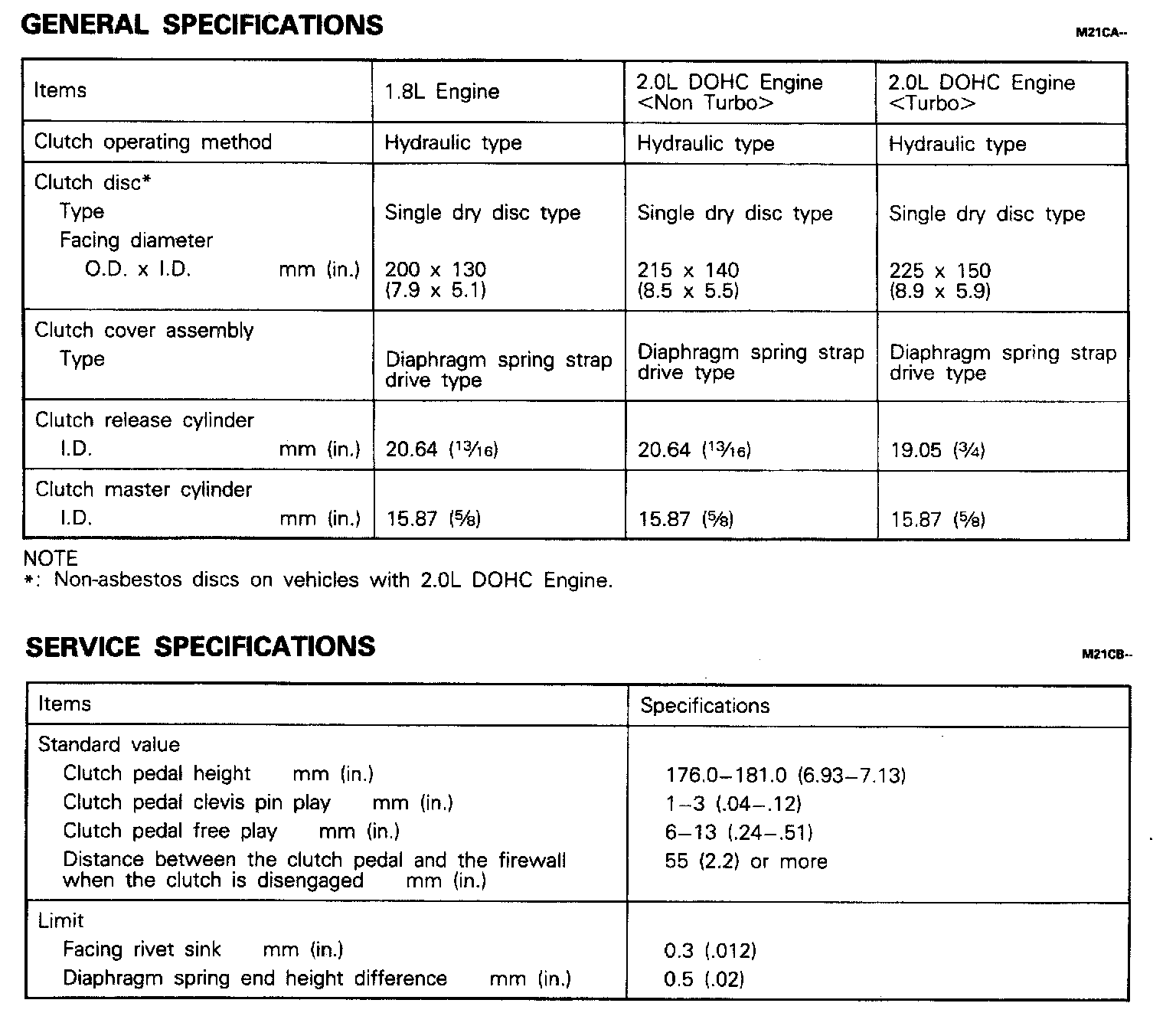 F5M22/F5M33 5-spd M/T, Clutch Dimensions & Standard Values: