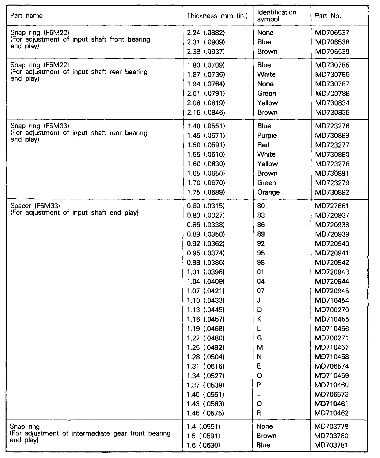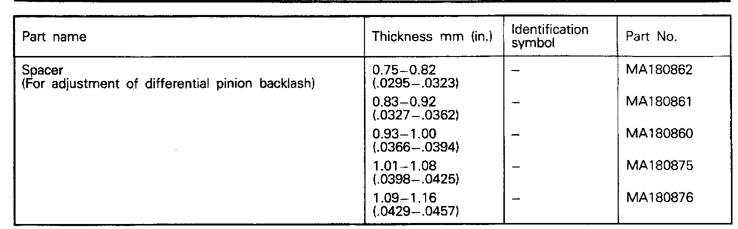 F5M22/F5M33 5-spd M/T, Differential Pinion Backlash: