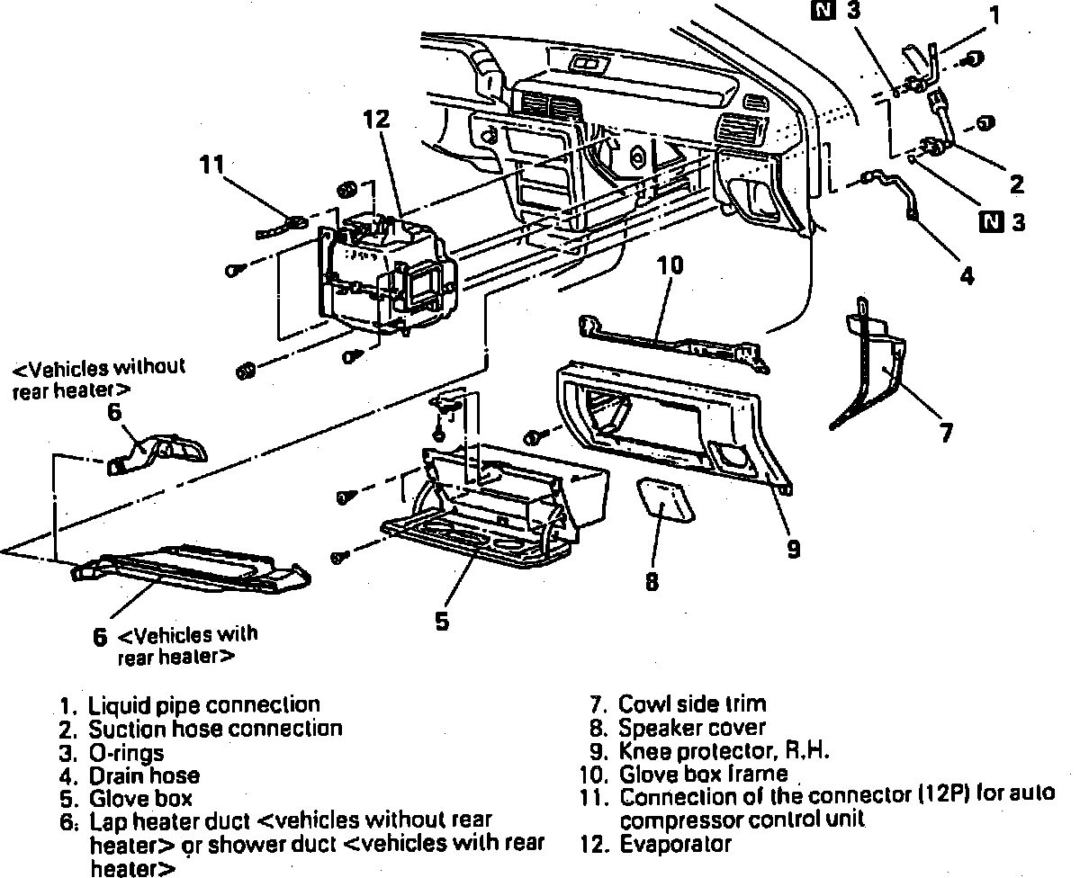 2. Discharge refrigerant from system, then disconnect evaporator inlet pipe, suction hose and drain hose.