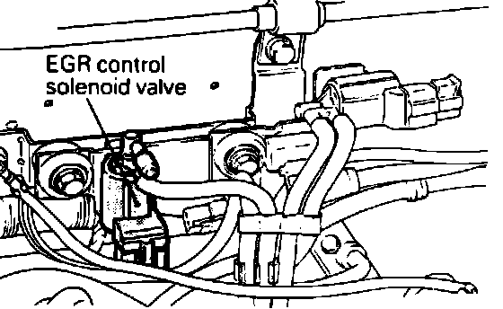 1. Disconnect the yellow/green striped hose from the solenoid valve and connect a hand vacuum pump to the fitting.