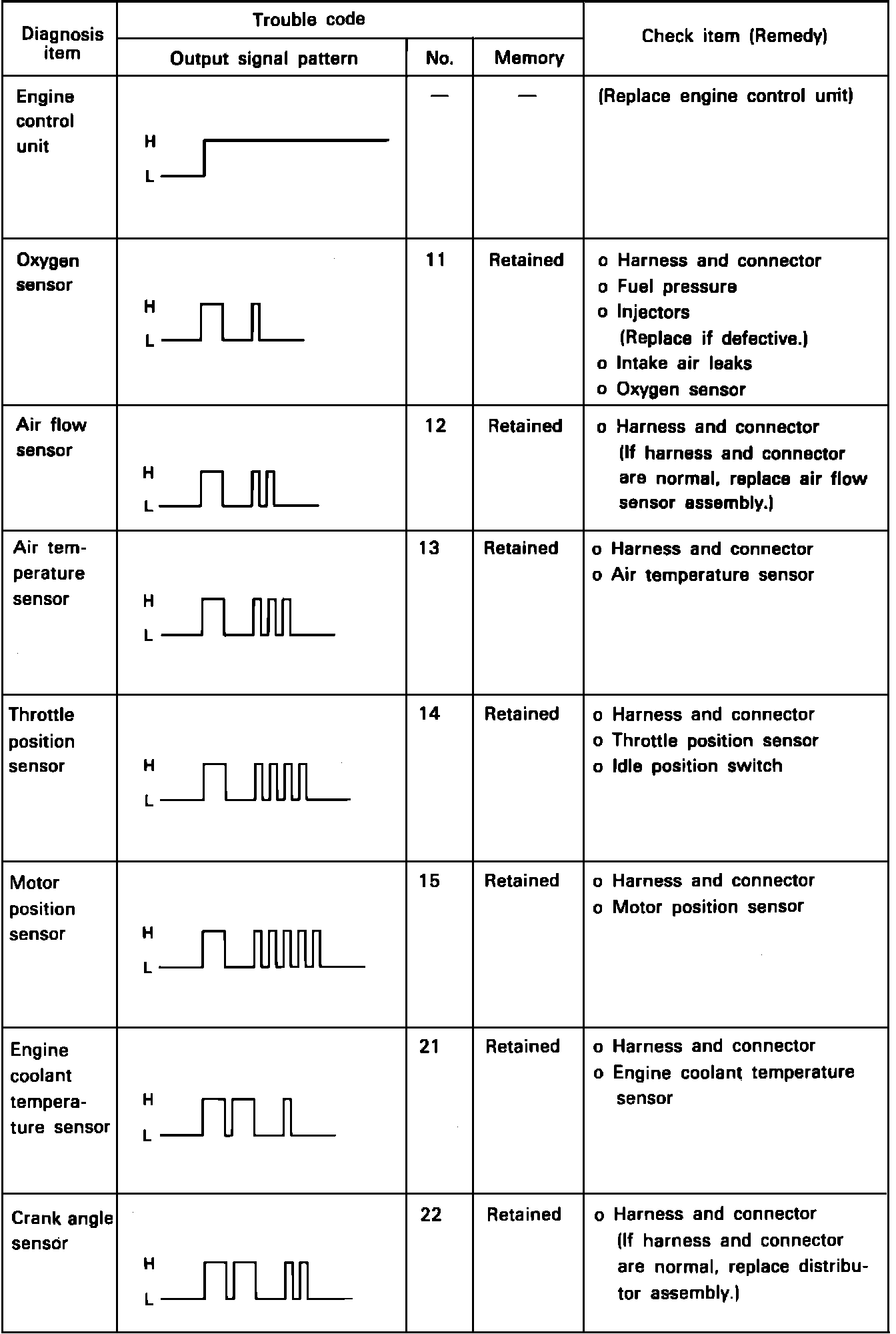 After the cause of a failure code has been detected and corrected the diagnostic code memory of the ECU should be cleared by disconnecting the vehicle battery for 15 seconds or more.