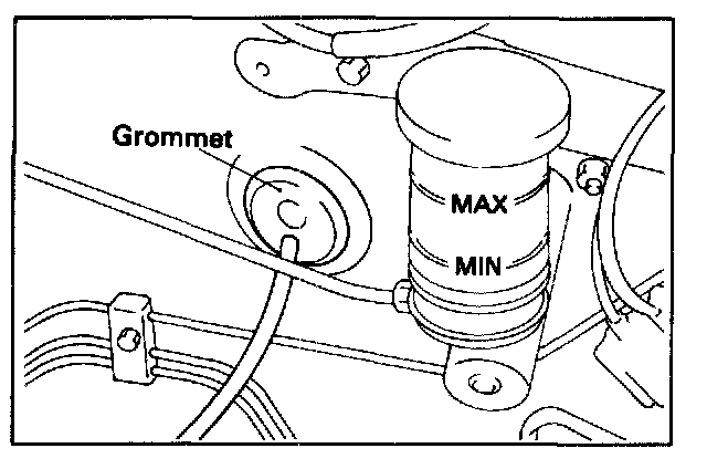 2. Install the grommet so the cable attachment part and the projecting part are horizontal, as shown in the illustration.