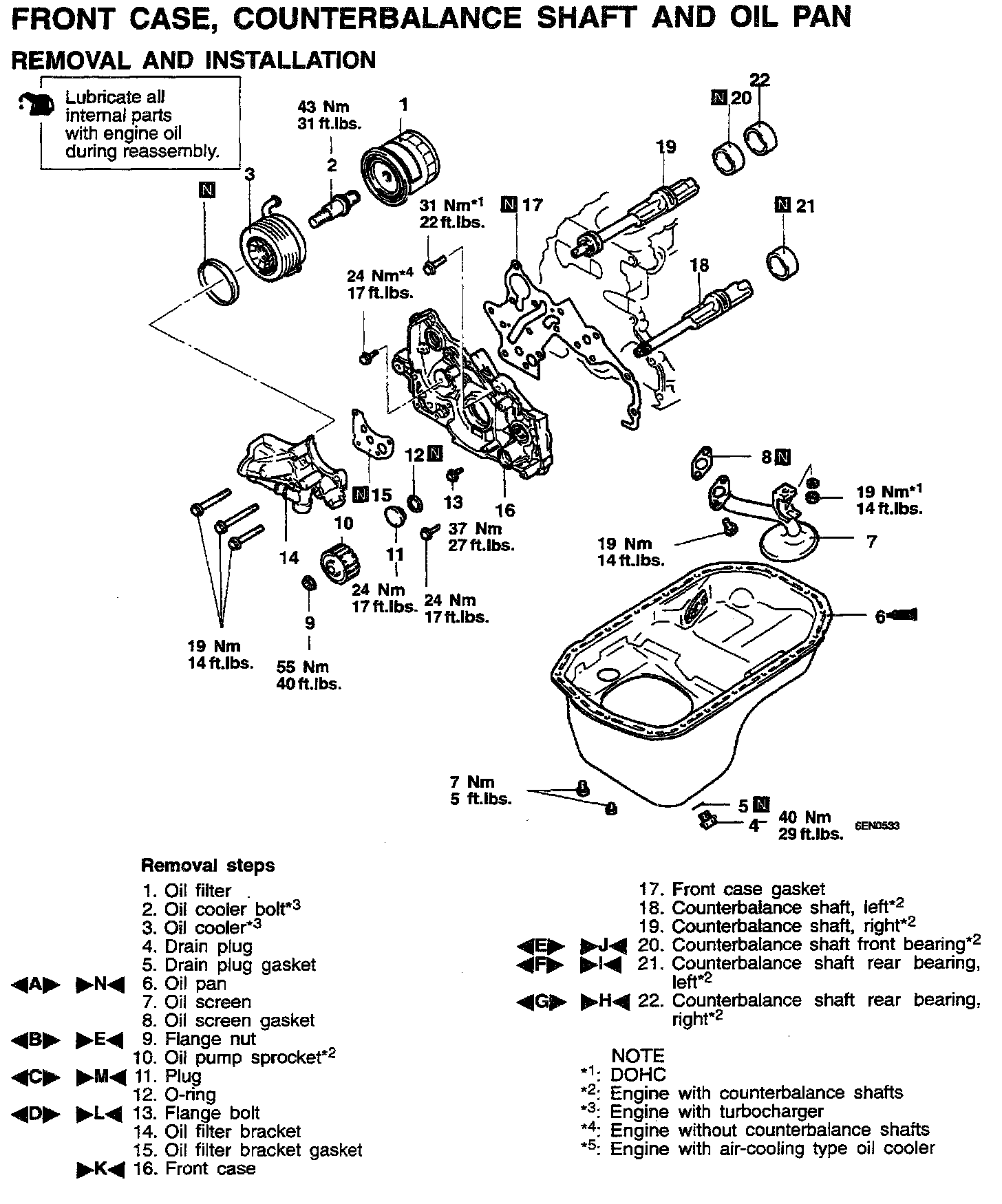 FRONT CASE, COUNTERBALANCE SHAFT AND OIL PANREMOVAL AND INSTALLATION