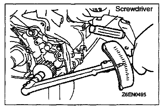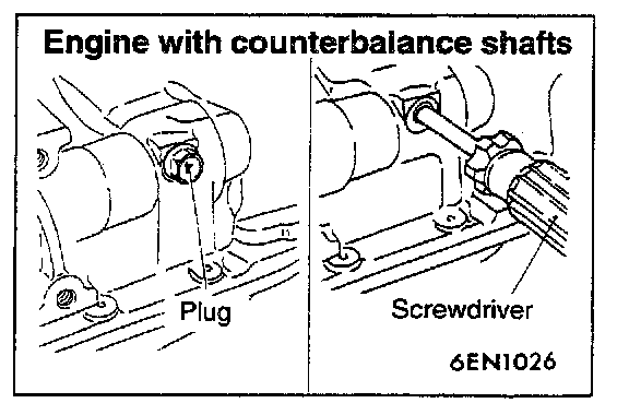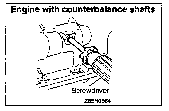 1. Insert a Phillips screwdriver into the hole on the left side of the cylinder block to lock the counterbalance shaft.