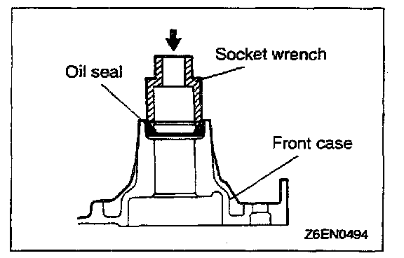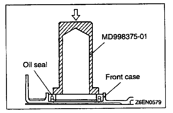 1. Using the special toot install the crankshaft front oil seal into the front case.