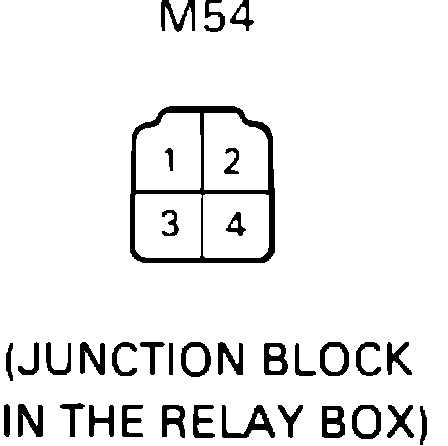 2. Disconnect the connector to the idle up relay (relay M54, located in the relay box, behind the knee bolster on the lower left side of the dashboard) and test terminal 3 for continuity to ground. There should be NO continuity (infinite ohms). If there is continuity, go to step 6.
