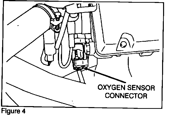 3. Disconnect the oxygen sensor connector (Figure 4) and remove the oxygen sensor wire from the wire supports/retainers.