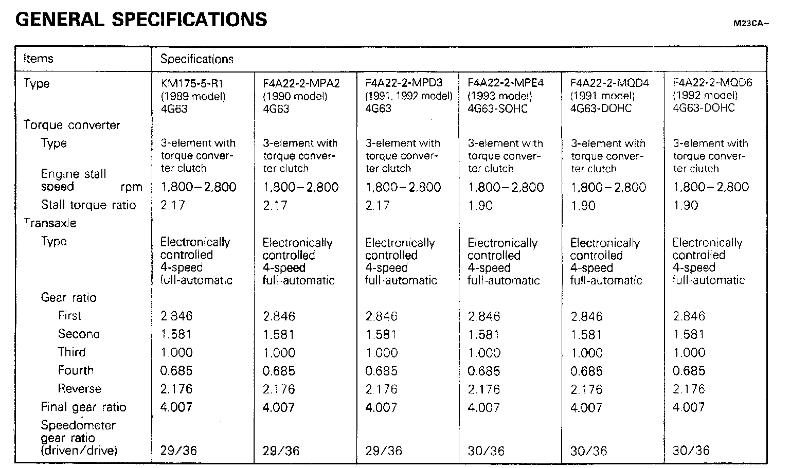 F4A22 4-spd A/T, Gear Ratios:
