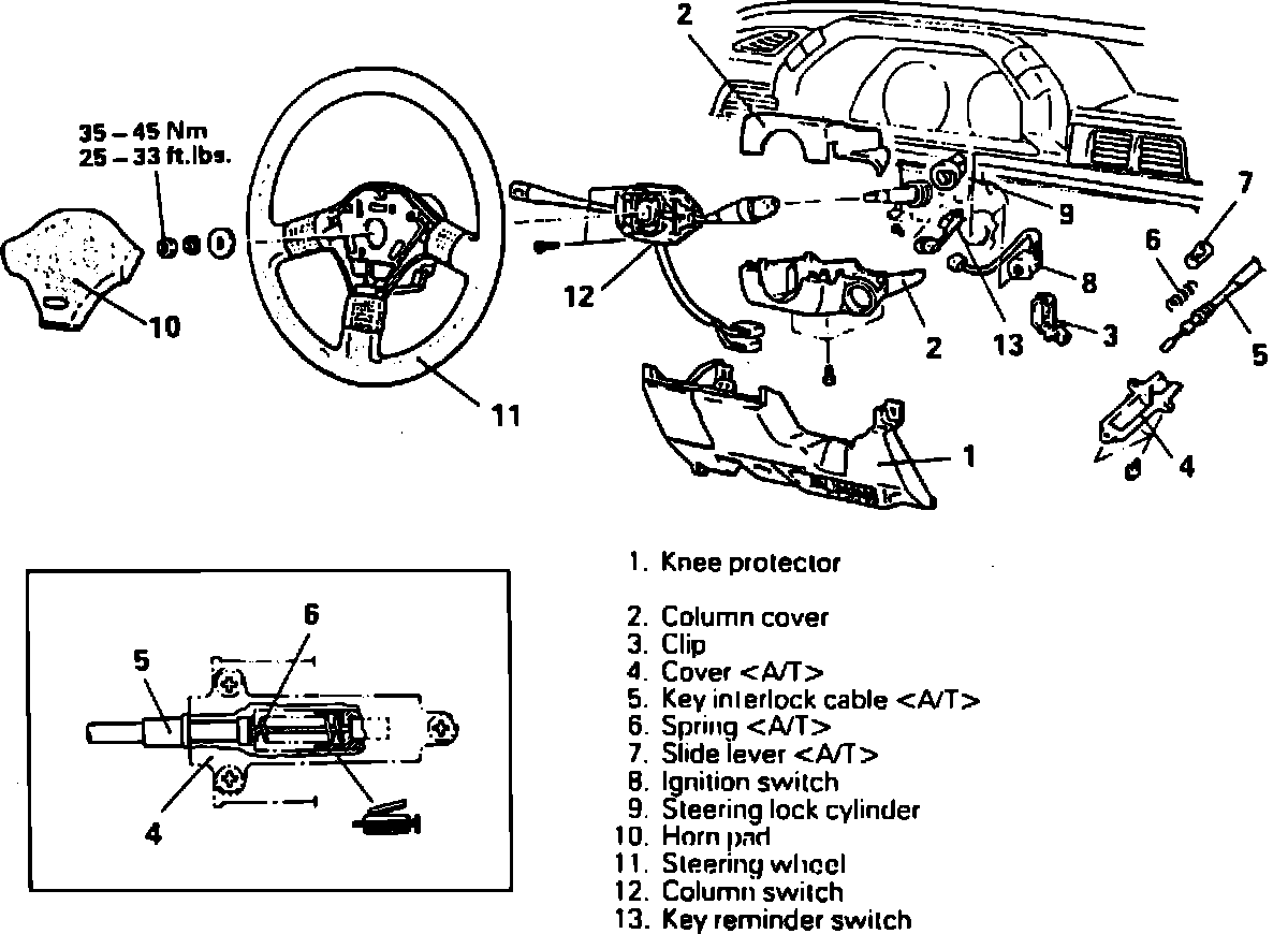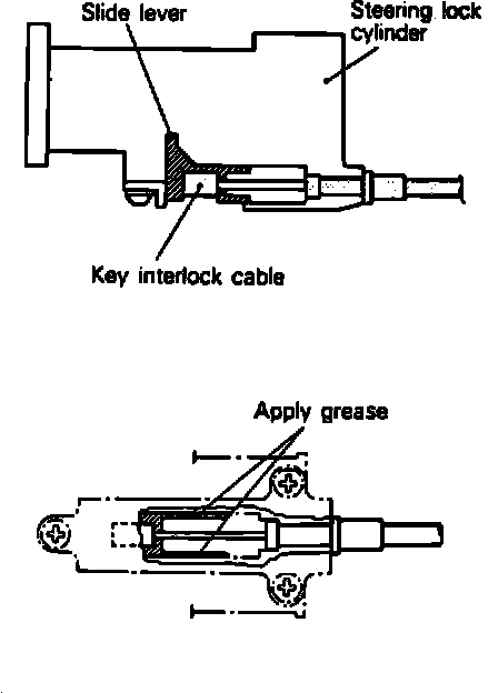 a. On models with automatic transaxle, with ignition key in Lock position or removed, install slide lever (7) in steering lock cylinder (9), Fig. 4.
