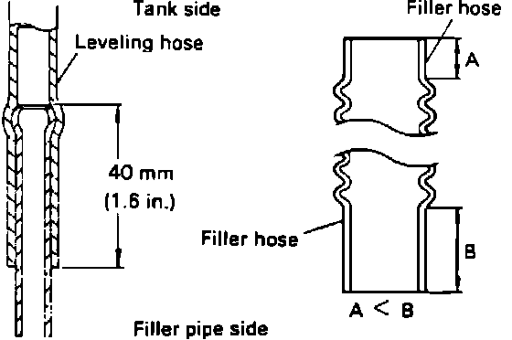 2. Connect the leveling hose, from the tank, approximately 1.6 in. (40mm) onto the filler neck.