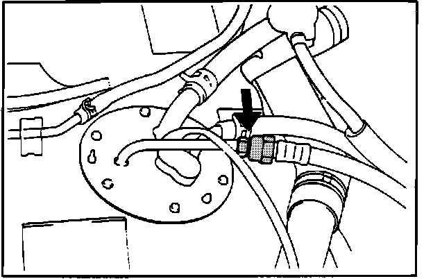 7. Disconnect the return line and vapor hose.